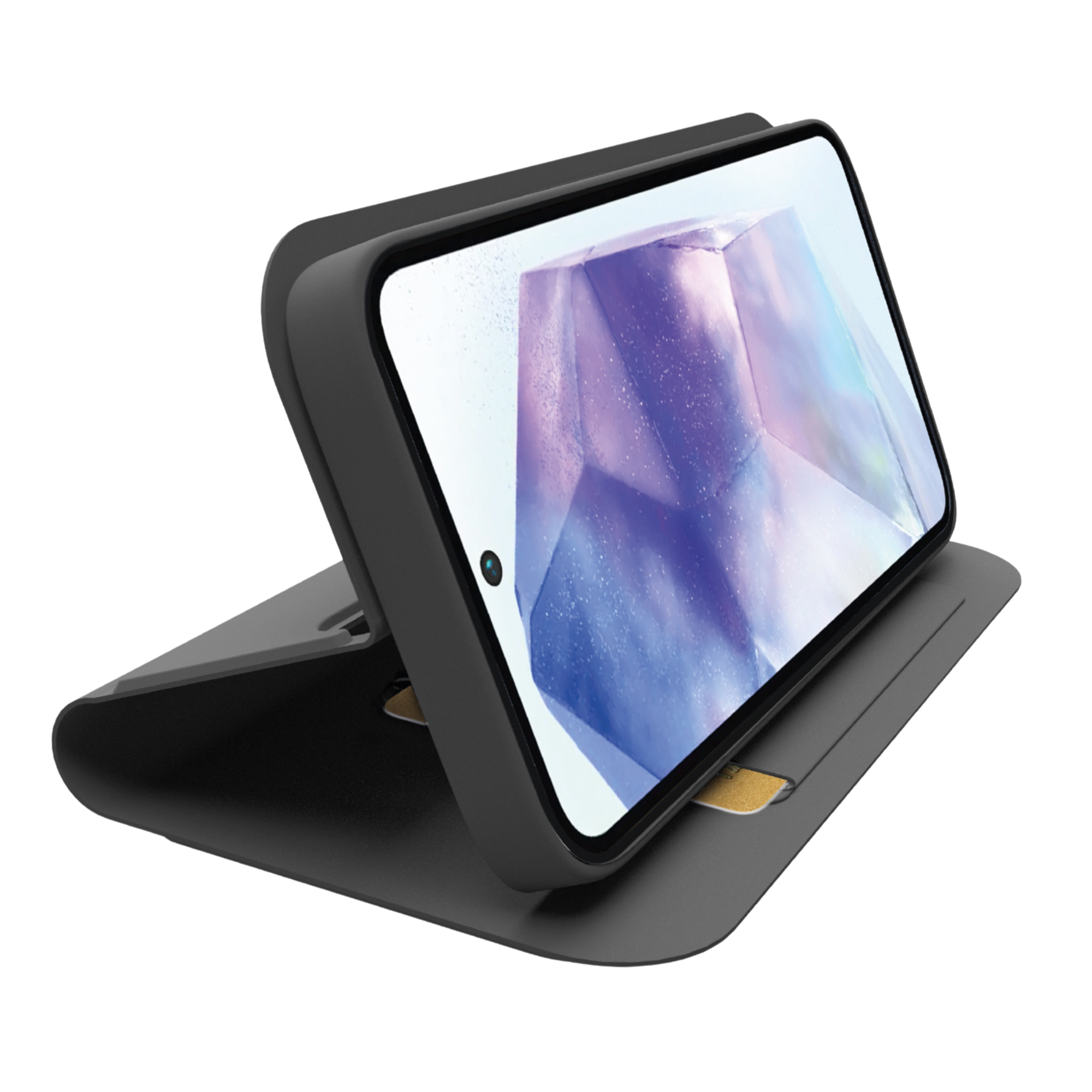 Viewing photos and videos has never been so easy, thanks to the stand function of the book-style Smooth Wallet case. This book-style case can be easily transformed into a stand for your smartphone: enjoy your favourite content hands-free.